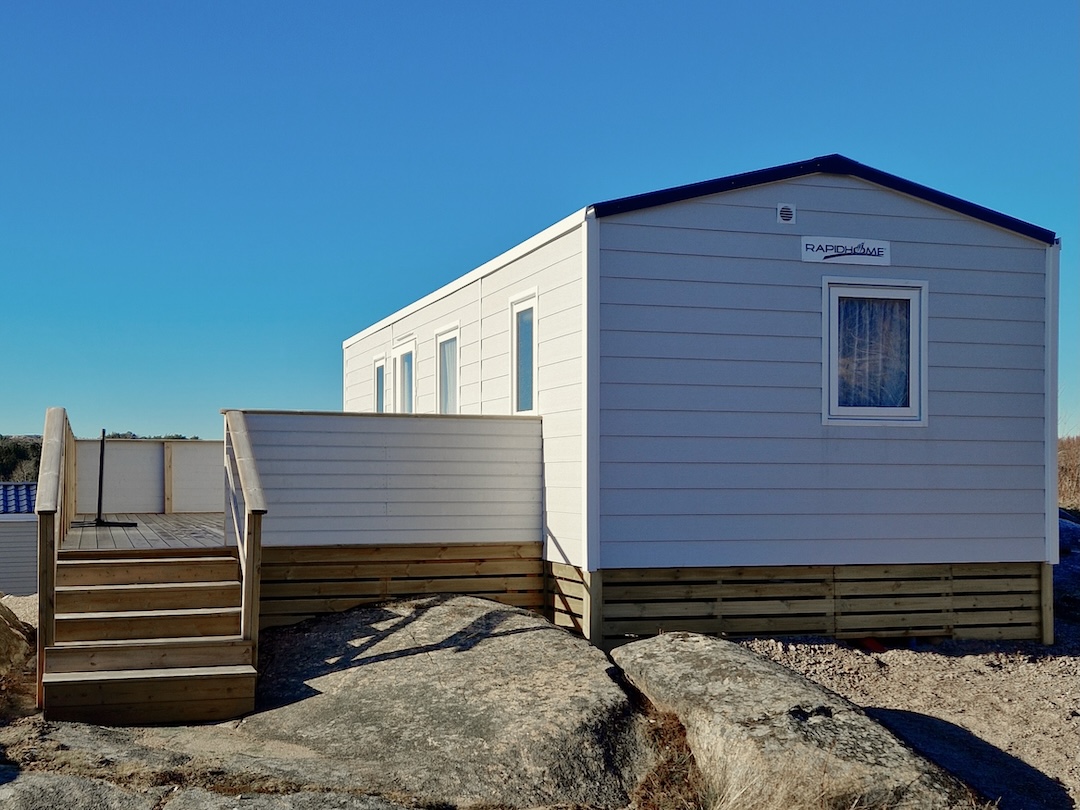 Exklusiv villavagn från 2024 med 6 bäddar. Vagnen är 32 m² och har fullt utrustat kök, allrum med matplats och TV, två sovrum samt ett duschrum och separat toalett. Utanför finns en rymlig altan med härlig utsikt – perfekt för soliga dagar. Nära receptionen, med Graniten och Lökåsen stugby som närmaste grannar. Avstånd till bad ca 600 m.